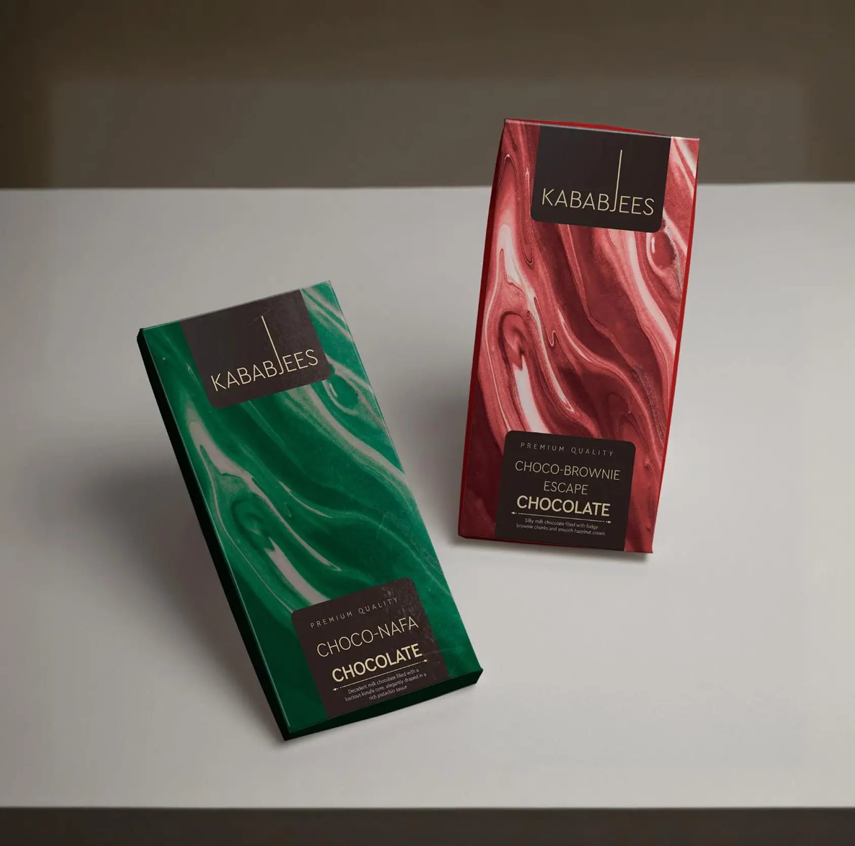 Elegant chocolate packaging design for Kababjees Chocolates by Comart Studios, featuring premium branding and rich visuals